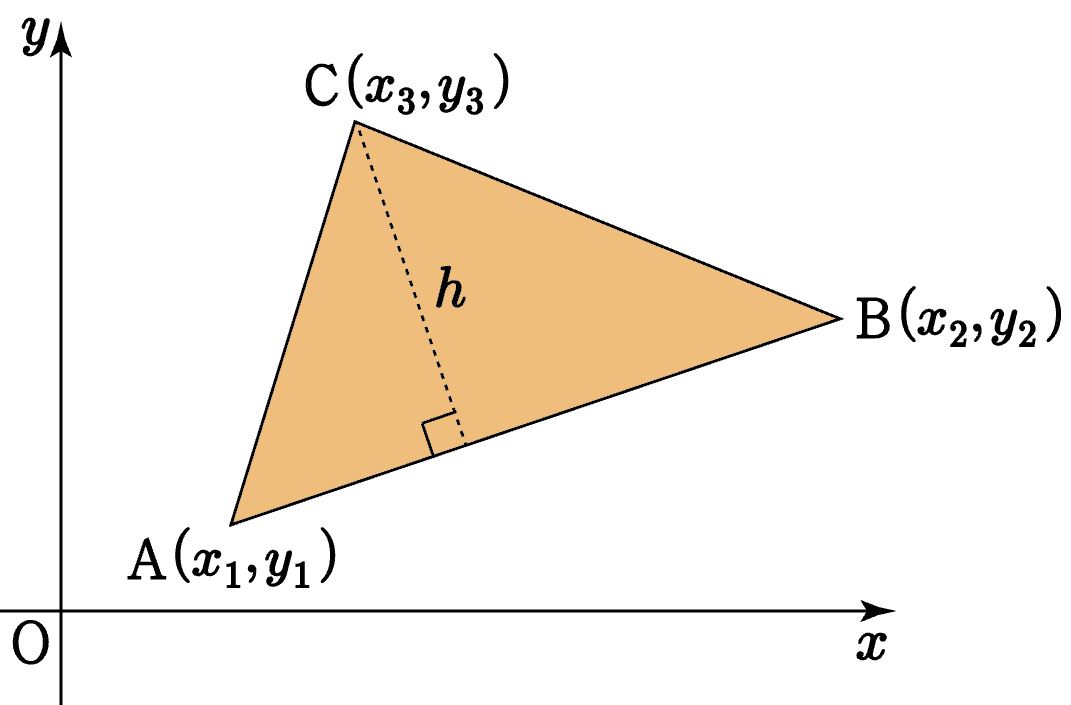점 $C$에서 직선 AB에 이르는 거리 $h$는