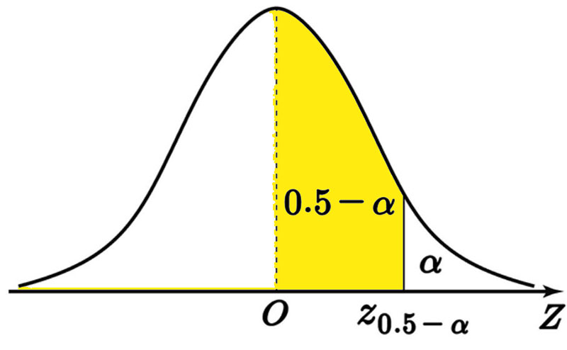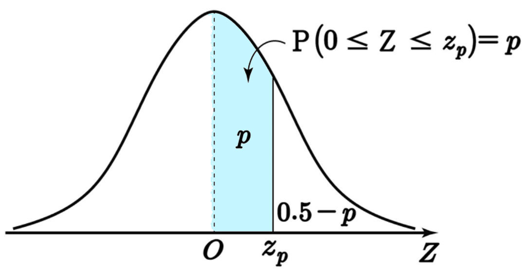 $$\textrm{P} \left( 0 \leq Z\leq z_p \right)=p$$로 정의한다.