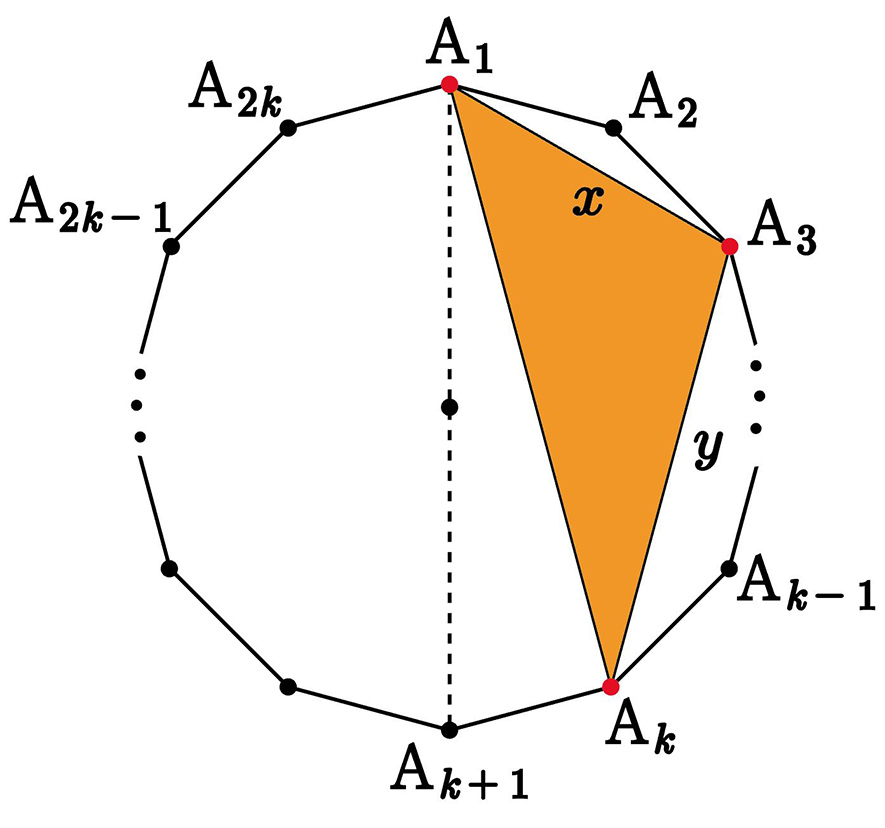 \(2k \)개의 꼭짓점 중에서 하나의 점을 선택해준다.