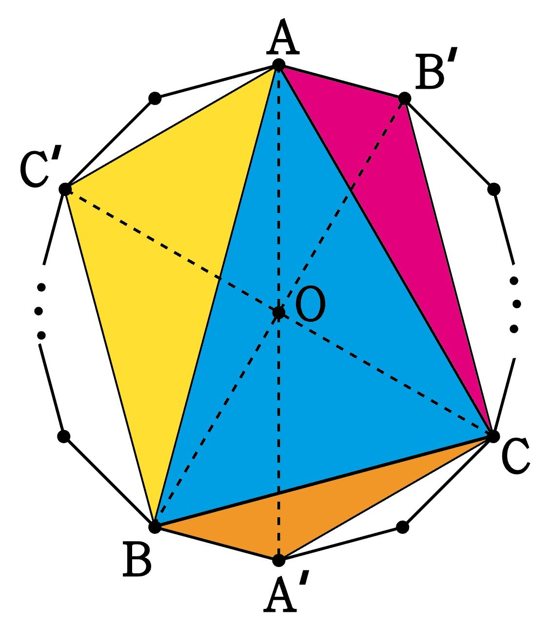 하나의 예각삼감형 ABC에 대하여 선택하게되면 각 꼭짓점에서 원점에 대칭이 점이 존재하게 된다.