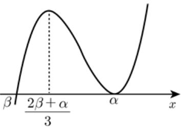 \( f(x)= a(x-\alpha)^2 (x-\beta) \) \( ( 단, \alpha > \beta) \) 라 하자.