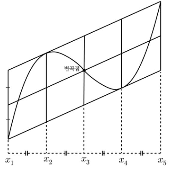 | 3. 극댓점과 극솟점의 중점은 변곡점이다. |