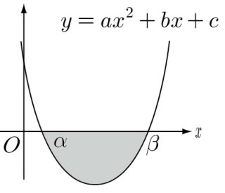 이차함수와 $x$축과 둘러싸인 영역의 넓이 공식은