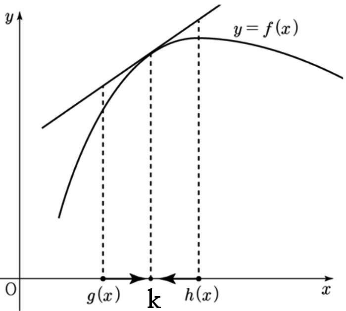| 함수 $f(x)$ 가 닫힌구간 $\left [ \;g(x),\; h(x) \; \right]$ 에서 연속이고 열린구간 $\left [ \; g(x), \; h(x) \; \right ] $ 에서 미분가능할 때 $\displaystyle \lim_{x \to a}f(x)=\displaystyle \lim_{x \to a}g(x)=k$ 이면 $$\displaystyle \lim_{x \to a}\frac{f\left ( h(x) \right )-f\left ( g(x) \right )}{h(x)-g(x)}=f'(k)$$ |