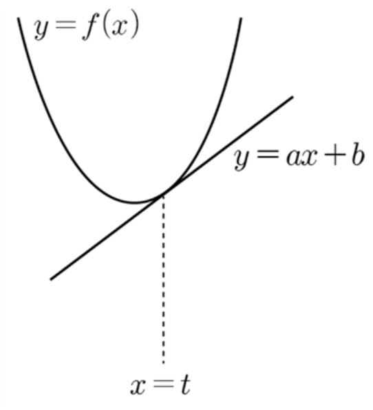 곡선 $y=f(x)$ 와 직선 $y=ax+b$ 가 $x=t$에서 접할 때