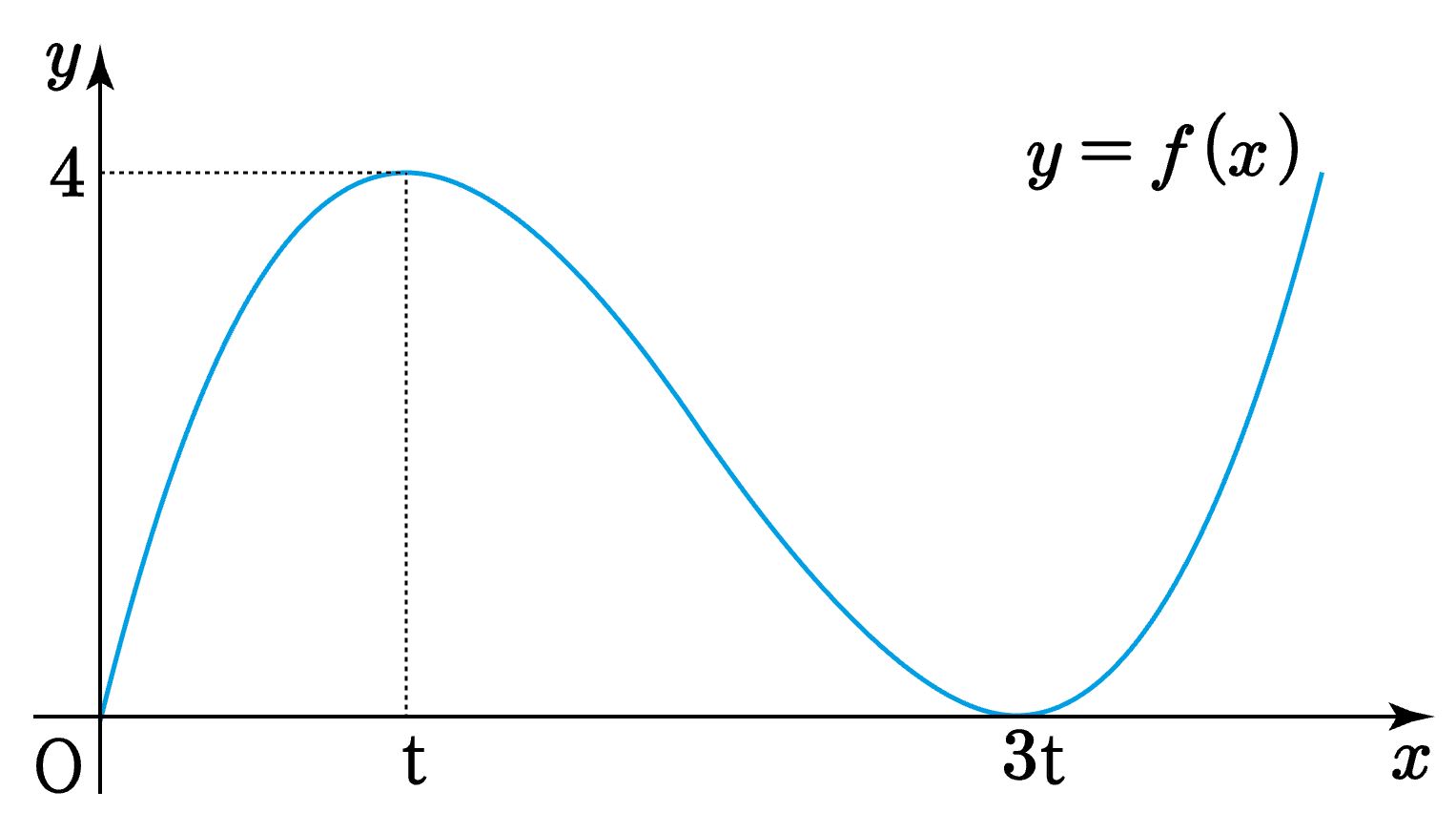 $x=t$에서 극댓값을 갖는다고 하면 $x=3t$에서 극솟값을 가져야 한다.